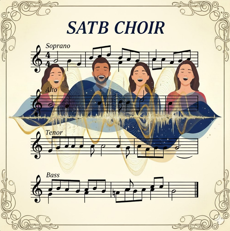 B (Bass): The lowest male voice. Role: The Bass line provides the harmonic foundation. It usually sings the "root" of the chord, grounding the music.
